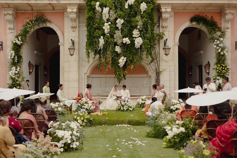 The vibrance of India met the charm of Portugal’s west coast, crowned by sea views, a moonlit dance floor and a palace dinner party to remember.